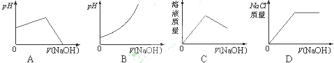 本题解析:氢氧化钠滴定盐酸,则溶液的pH逐渐增大,但不可能无限的增大,所以AB不正确。溶液的质量是逐渐增大的,C不正确,所以正确的答案选D。