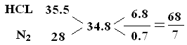 3、选择题 在烧瓶中充满干燥标准状况下HCl与N2的混合气,已知其相对分子质量为34.8,进行喷泉实验后所得溶液的物质的量浓度为? ( )