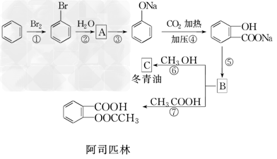 5、推断题 乙酰水杨酸(俗称阿司匹林)是一种常见的解热、消炎、镇痛药物.以苯为主要原料,通过下图所示途径可以制取阿司匹林和冬青油