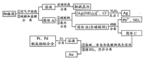 (2)电解精炼铜的阳极泥中含有铜和金、银等贵重金属及稀有金属。提炼阳极泥的方法有多种,湿法提炼是其中重要的一种,其主要生产流程如下: