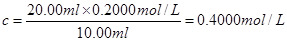 (4)两次滴定所消耗的盐酸体积是20.10ml和19.90ml,其平均值是20.00ml。所以氢氧化钠溶液的是