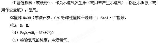 1、填空题 (16分)在一定条件下用普通铁粉和水蒸气反应,可以得到铁的氧化物。该氧化物又可以经过此反应的逆反应,生成颗粒很细的铁粉。这种铁粉具有很高的反应活性,在空气中受撞击或受热时会燃烧,所以俗称“引火铁”。请分别用图中示意的两套仪器装置,制取上述铁的氧化物(左)和“引火铁”(右)。实验中必须使用普通铁粉和6mol/L盐酸,其他试剂自选(装置中必要的铁架台、铁夹、铁圈、石棉网、加热