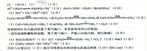 (4) Fe3 +?>0.07mol (或Cl-?<0.07mol ) (各2分)