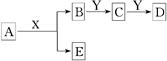 1、选择题 中学化学中,常见无机物A、B、C、D、E、X、Y存在如下图转化关系(部分生成物和反应条件略去)。