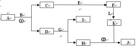 4、填空题 已知:E为常见金属单质,C、D、F、I均为常见气体,其中C、D为单质,F、I为化合物,且组成元素相同,D、F有毒,I为直线型非极性分子,它们有如下框图关系: