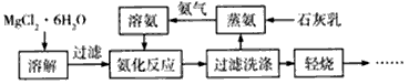1、填空题 镁砂(MgO)是一种高温耐火材料。下图是氨法制取高纯镁砂的部分工艺流程