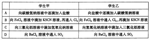 3、选择题 学生甲和学生乙完成了下列实验,其中实验现象完全相同的是