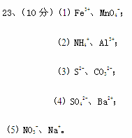 3、实验题 (10分)有一种白色粉末,含有下列阴离子和阳离子中的几种,阴离子:S2- 、MnO4-、NO3-、SO42-、CO32-,阳离子:Na+、Al3+、Ba2+、Fe3+、NH4+,将白色粉末进行下列实验,实验操作及观察到现象如下: