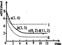 CH3OH(g)+H2O(g)△H=-49.0kJ·mol-1。某科学实验将6molCO2和8molH2充入2L密闭容器中,测得H2的物质的量随时间变化如右图所示(实线)。图中数据a(1,6)代表的意思是:在l min时H2的物质的量是6mol。