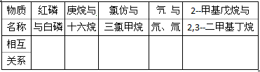 ①同位素 ②同素异形体 ③同分异构体 ④同系物 ⑤同种物质