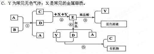 3、填空题 (16分)已知:A、B、C、D、E五种物质间存在如下转化关系:A + B→C + D + E