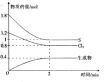 中C12(g)、S(g)发生反应(产物只有一种),三种物质的物质的量随时间变化的曲线如图所示,请回答下列问题: