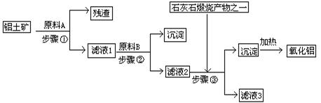 3、填空题  (8分)工业上用铝土矿(主要成分为Al2O3,还有Fe2O3、SiO2)提取氧化铝做冶炼铝的原料,提取的操作过程如下: