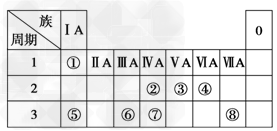 5、填空题 下表为元素周期表的一部分,请参照元素①~⑧在表中的位置,用化学用语回答下列问题