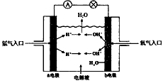 2、填空题 下图为氢氧燃料电池原理示意图,请根据提示写出正负极的电极反应式