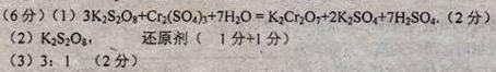 (3)在酸性条件下K2Cr2O7与草酸(H2C2o4)反应的产物是:Cr2(SO4)3、CO2、K2SO4和H2O,则还原剂与氧化剂物质的量之比为?。