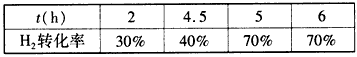 CO和4 mol H2置于一体积不变的1L密闭容器中,测定不同时间段内H2的转化率,得到如下数据: