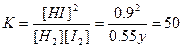 2HI(g)的平衡常数是50,在该温度下只充入H2与I2(g)发生反应,反应开始时,碘蒸气的浓度是1mol·L-1,当达到平衡时c(HI)=0.9mol·L-1,求H2的转化率?(保留三位有效数字)