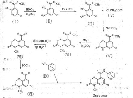 3、填空题 (14分)苏罗同(Serotone)是一种镇吐药,其合成路线如下: