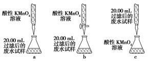 ②精确量取20.00 mL过滤后的废水试样,用0.1 mol·L-1紫色KMnO4(H2SO4酸化)溶液进行滴定(有关反应为2MnO4—+5SO32—+6H+=2Mn2++5SO42—+3H2O)。