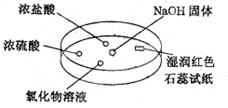 1、选择题  如右图,利用培养皿探究氨气的性质。实验时向NaOH固体上滴几滴浓氨水,