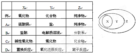 2、选择题 右图用交叉分类法表示了一些物质或概念之间的从属或包含关系,其中不正确的是