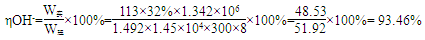 (5)已知在电解槽中,每小时通过1安培的直流电可以产生1.492g的烧碱,某工厂用300个电解槽串联生产8小时,制得32%的烧碱溶液(密度为1.342吨/m3)113m3,电解槽的电流强度1.45 ×104A,该电解槽的电解效率为?。