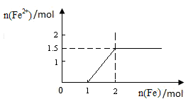 ,1mol铁与4mol硝酸恰好完全反应生成1mol +3铁,再加入铁则发生反应: