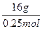 5、计算题 已知16 g A与20 g B恰好完全反应,生成W g C和4 g D。在相同条件下,8 g A和过量B混合反应,生成D和0.25 mol C,求C的摩尔质量是多少?