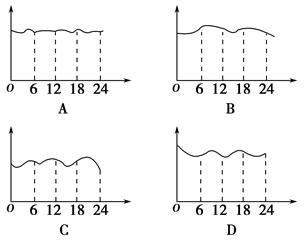 5、选择题 下面是某环境监测兴趣小组的同学描绘的南京市中心新街口地区空气中CO含量变化曲线,横坐标表示北京时间0时到24时,纵坐标表示CO含量,你认为比较符合实际的是( )。