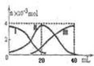 5、选择题 常温下,向20mL 0.2mol/L H2A溶液中滴加0.2 mol/L NaOH溶液。有关微粒的物质的量变化如图(其中I代表H2A,II代表HA-,III代表A2-,横坐标表示加入NaOH的体积)。根据图示判断,下列说法正确的是