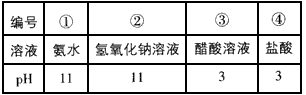 4、选择题 常温下,对下列四种溶液的叙述正确的是
