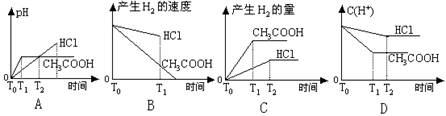 4、选择题 在体积都为1L,pH=2的盐酸和醋酸溶液中,投入0.65g锌粒,则下图所示比较符合客观事实的是