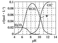 4、选择题 25 ℃时,0.1 mol Na2CO3与盐酸混合所得的一组体积为1 L的溶液,溶液中部分微粒与pH的关系如图所示。下列有关溶液中离子浓度关系叙述,正确的是