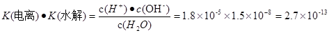 。c (H+)·c(OH-)=K(电离) ·K(水解) ·c(H2O)="Kw." 所以在该温度下水的离子积常数Kw=2.7×10-13.水是弱电解质,升高温度,促进水的电离,水电离产生的离子浓度增大,水的离子积常数也增大。由于2.7×10-13>1.0×10-14.所以温度高于25℃。2的除去方法、含有Cr2O72-的酸性废水的电解法处理、原电池的反应原理及电极式的书写、弱电解质的电离平衡、盐的水解平衡、水的离子积常数的计算的知识。
