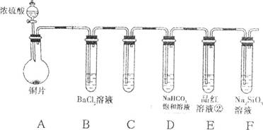 Fe2+(aq)+S2-(aq) ,由于Ksp(FeS)=6.3×10-18mol2·L-2>>Ksp(CuS)=1.3×10-36mol2·L-2,所以当溶液中含有Cu2+时,Cu2+就会与FeS电离产生的S2-结合产生更难溶的沉淀CuS。Cu2++ S2-=CuS↓,FeS再溶解电离,产生的S2-再反应变为CuS沉淀。最终能够把溶液中的Cu2+完全沉淀除去。反应的两种方程式为:①FeS(s)+Cu2+(aq)=" CuS(s)+" Fe 2+( aq).?② SO2+H2O=H2SO3,溶液显酸性。A.当向其中加入Ba(NO3)2时,也就相当于存在硝酸。硝酸有强氧化性,能把H2SO3氧化产生H2SO4.故会产生BaSO4沉淀。正确。B.假如能与BaCl2发生反应,则反应的方程式为:B.BaCl2+ SO2+H2O=BaSO3↓+2HCl. BaSO3能与HCl发生反应,所以在酸性环境不存在。即该反应是不能发生的。换句话说就是不能发生反应产生沉淀。C.酸性氧化物SO2能与碱发生反应:Ba(OH)2+ SO2=BaSO3↓+ H2O.正确。D.首先发生反应:2NH3+ SO2+H2O= (NH4)2SO3,然后发生:(NH4)2SO3+BaCl2= BaSO3↓+ 2NH4Cl .正确。因此选项为A、C、D。③由于SO2足量。所以反应的方程式为:SO2+NaOH=NaHSO3。NaHSO3=Na++HSO3-。HSO3-在溶液中存在电离平衡HSO3-