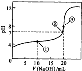 (2)在加入20. 00 mL NaOH溶液时,pH显示大于7,用离子方程式表示其原因:__________________;