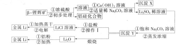 -锂辉矿与硫酸等物质制备金属锂的工业流程如下图: