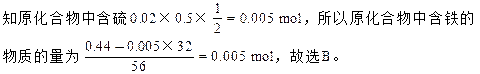 3、选择题 在O2中灼烧0.44g硫和铁组成的化合物,使其中的硫全部变为SO2,把这些SO2全部转化为H2SO4,这些H2SO4可以用20mL0.5 mol/L的NaOH溶液完全中和,则原化合物的化学式为?