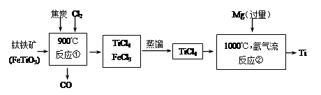 2、填空题 (12分)Ti有“太空金属”之称,在常温下,其单质比较稳定,不与非金属、强酸反应;在高温下,Ti可与常见非金属反应。以钛铁矿(FeTiO3)为主要原料冶炼金属钛的一种工业生产流程如下: