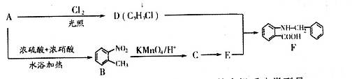 5、推断题  芳香烃A是一种重要的有机化工原料,以A为原料制备药品消炎灵(盐酸祛炎痛)的中间产物F的转化路线为: