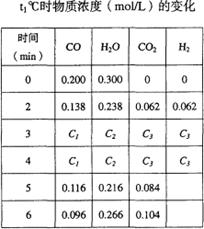 (2)t1℃(高于850℃)时,在相同容器中发生上述反应,容器内各物质的浓度变化如右表。