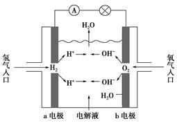 2、选择题 如图为氢氧燃料电池示意图,按此图的提示,下列叙述不正确的是( )。