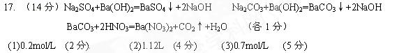1、计算题 (14分)取l00mL Na2CO3和Na2SO4的混合溶液,加入100mL Ba(OH)2溶液后,