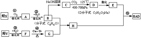 2、推断题 利用芳香烃X和链烃Y可以合成紫外线吸收剂BAD,已知G不能发生银镜反应,BAD结构简式为