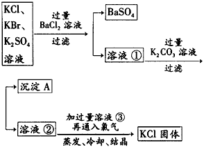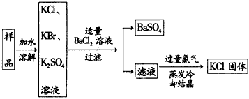 5、实验题 实验室需要制备纯净的氯化钾。现有含少量KBr和K2SO4的氯化钾样品,按照下图所示的实验方案进行提纯。