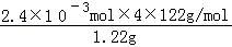 (4)称取1.220g产品,配成100ml甲醇溶液,移取25.00ml溶液,滴定,消耗KOH的物质的量为2.40×10﹣3mol,苯甲酸是一元弱酸和氢氧化钾1:1反应,所以物质的量相同,注意溶液体积变化计算样品中 苯甲酸的物质的量,计算质量分数;样品中苯甲酸质量分数=