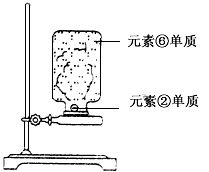 (5)将一小块元素②的单质放在石棉网上,用酒精灯微热,待其熔成球状时,将盛有元素⑥单质的集气瓶迅速倒扣在它的上方(如下图所示)。写出该反应的化学方程式______________________________。