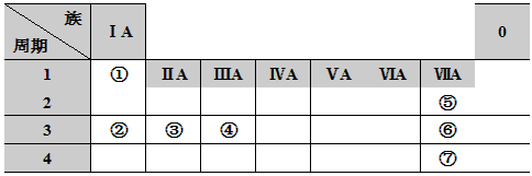 4、填空题 下表列出了①~⑦七种元素在周期表中的位置