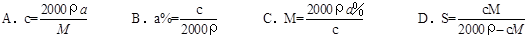1、选择题 某温度下,物质X2SO4的饱和溶液密度为ρg·mL-1,C(X+)=" c" mol·L-1,溶质的质量分数为a%,溶质的摩尔质量为Mg·mol-1,溶解度为S g ,下列表达式正确的是
